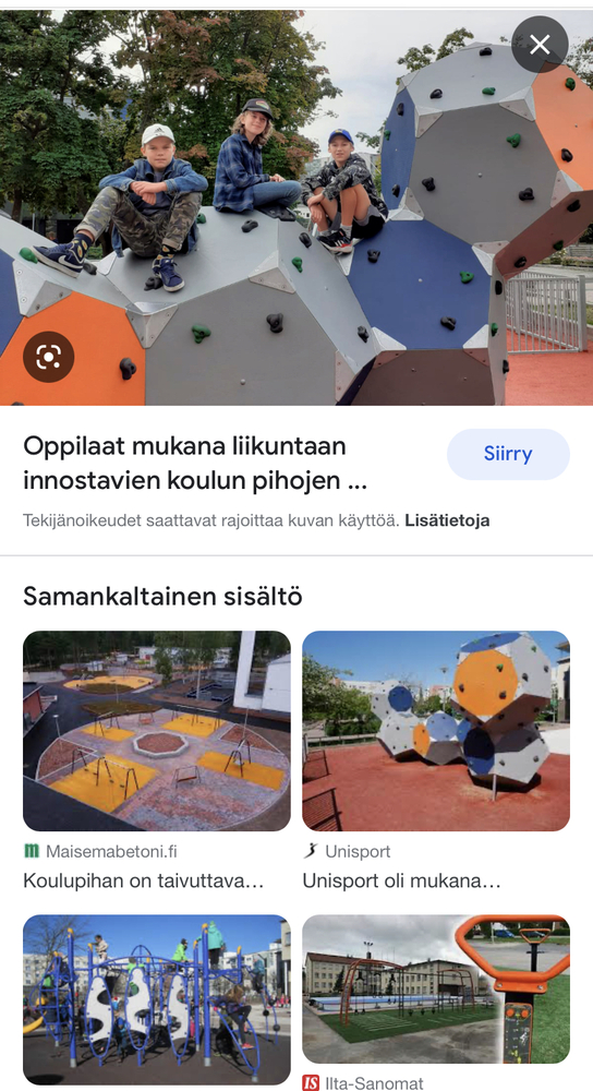 Esim. Ninjarata tai kiipeilyseinä. Erilaisia telineitä edistämään lasten liikkumista.