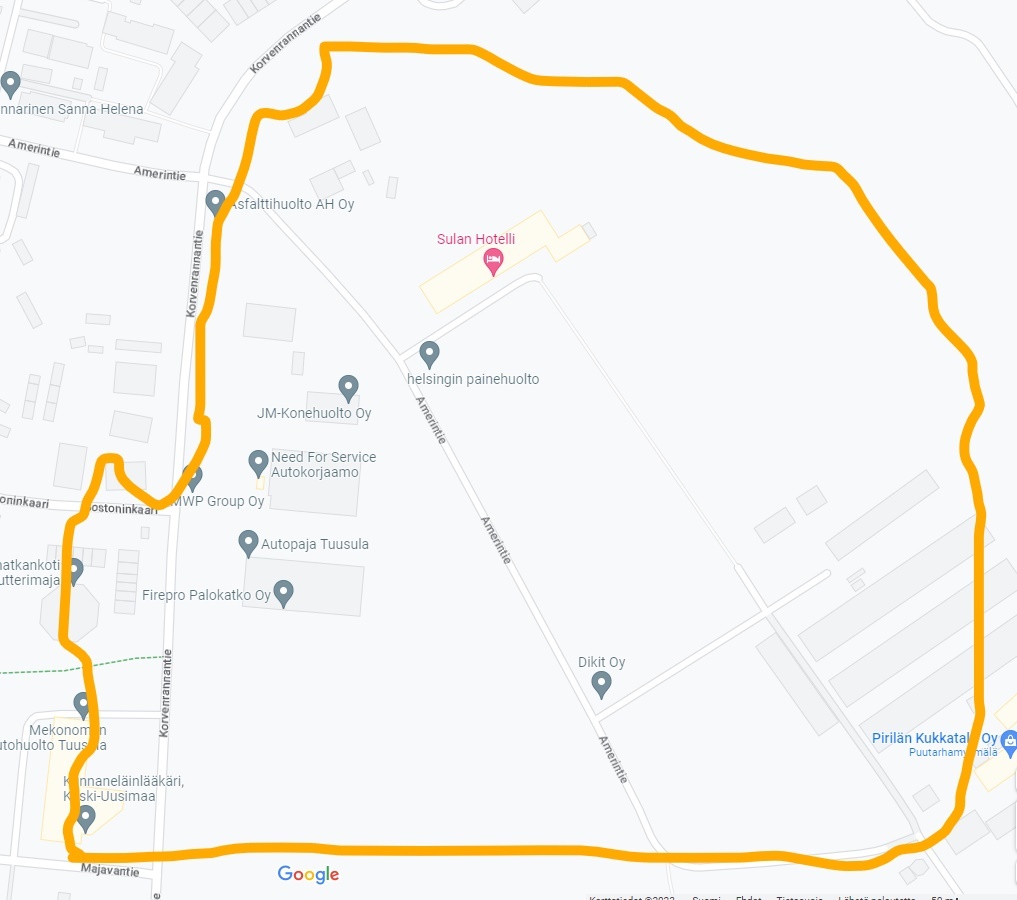 Kukkatalon takana on iso joutomaa alue. Siellä kulkee kesäisin hoitamaton hiekkatie, jonne Korvenrannantieltä pääsee uhkarohkeasti tien ylittäen. Puuttuu suojatie.