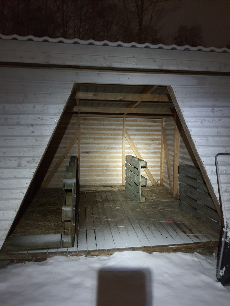 Keppihevostalli toimii nyt lammasaitauksen katoksessa. Tallin pitäjillä oli kova huoli, mitä harrastukselle tapahtuu, kun tulee kesä ja lampaat palaavat joenvarren laitumelle.